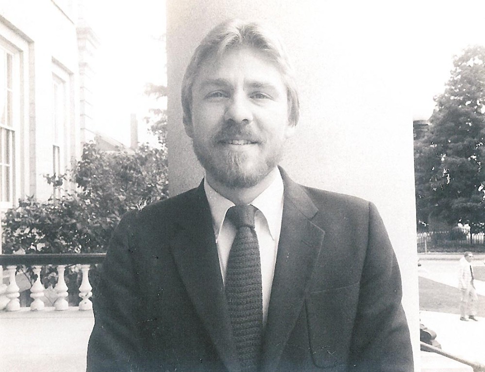 Representative V. Michael Hutchings on the statehouse steps 1983
