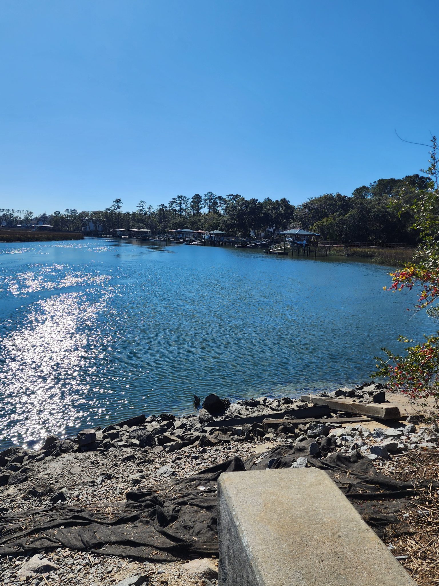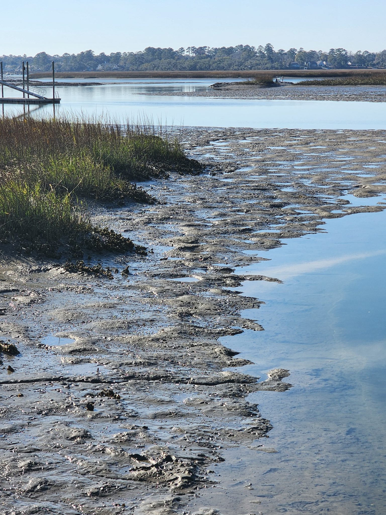 This time I went turned right towards Port Royal when I got on the trail that runs behind our Airbnb. My first couple of walks I followed the path to the left. Today’s walk is a much better experience. Virtually no traffic noise and, although I crossed a couple residential streets, there no cars to worry about. I was able to let Teddi off leash, because of the absence of any traffic, and because I my fears about alligators and snakes dissipated when I spoke to the man who explained what to expect in salt marsh areas, that is, respecting the absence of dangerous animals.