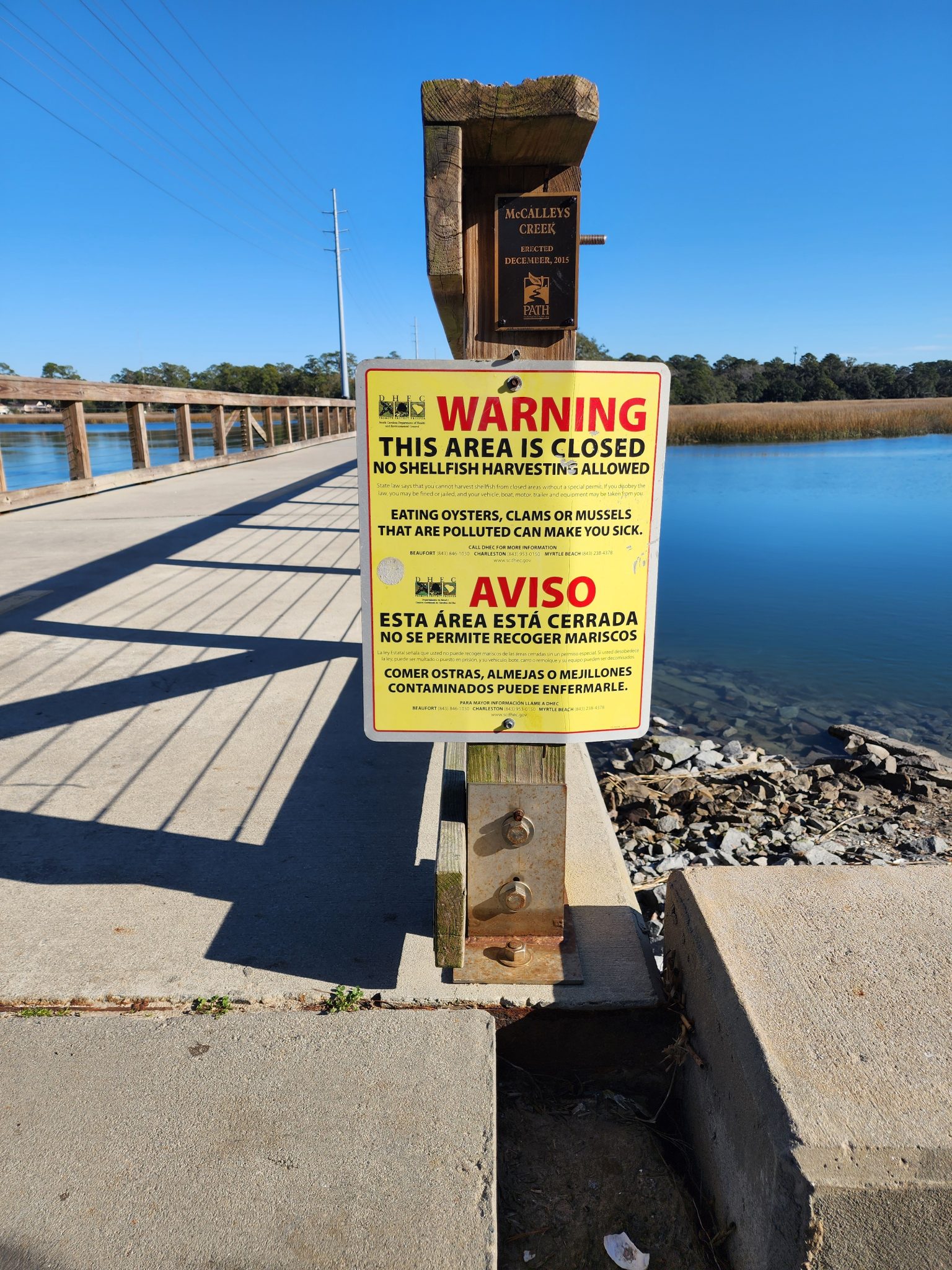 I walked further south for about one mile to my turnaround. When I came back along the trail he was still there, fishing, leaning on the rail and staring out toward the channel. I was continuing north by the fishing platforms, on my way back to the Airbnb, noticing that the water level had noticeably dropped. One could clearly see the flow had reversed, flowing back toward the sea.
