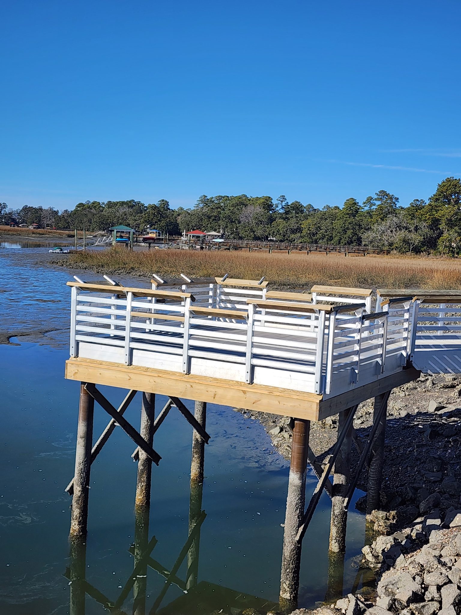 We walked out onto three different boardwalks that jut out into and overlook the salt marsh, bisected by Jarvis Creek, a saltwater waterway that snakes along the Western and South property lines of the museum.