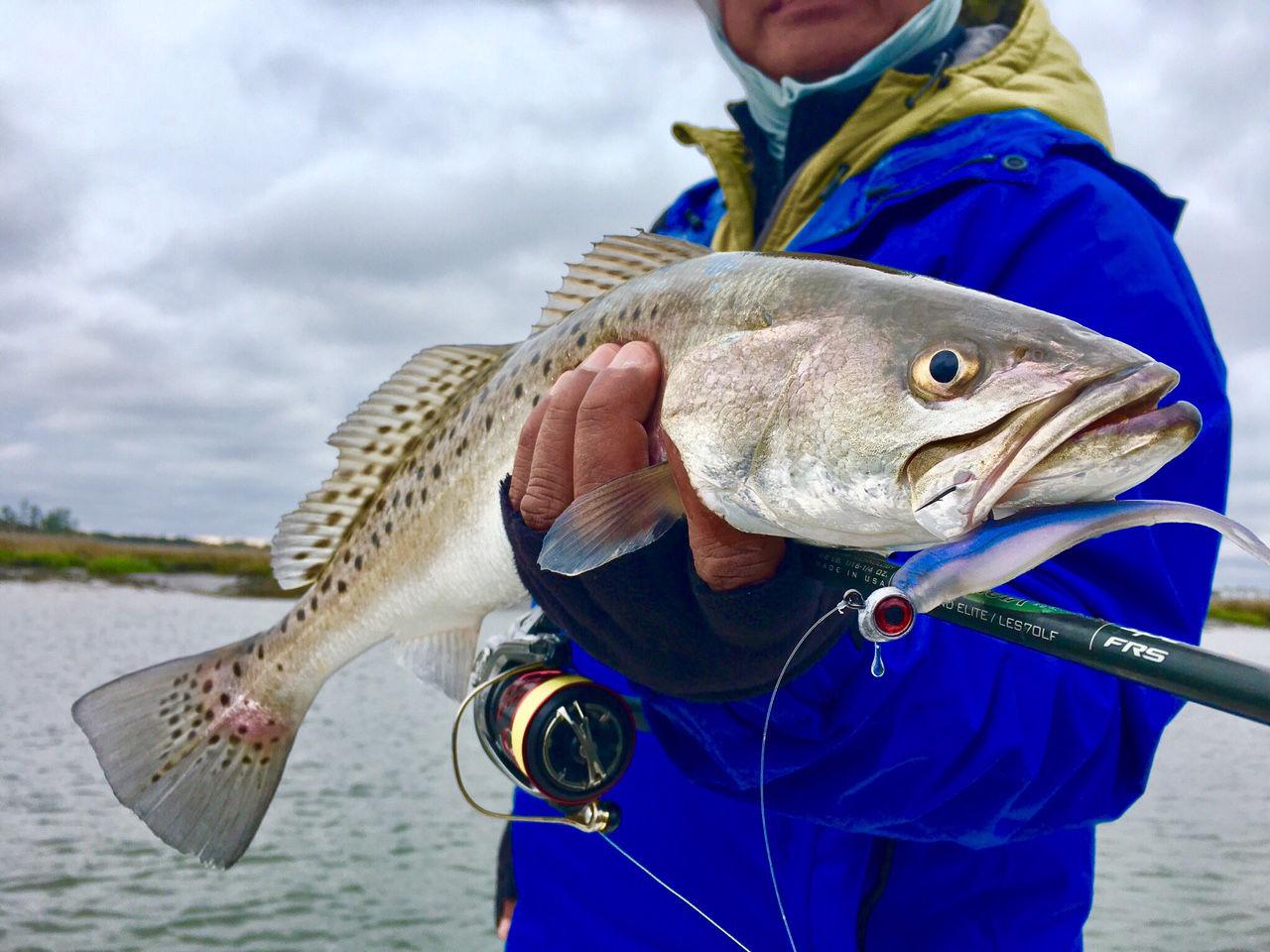 I talked to another man, about my age, who carried a rod and reel with a soft dull green grub lure hanging off it. It hung on about three feet of line, swinging back and forth in time to his gait, as he walked in the opposite direction toward me. Before he passed, I asked him if he fishes off the bridge that at spans the canal. He said, "All the time. I caught a handful of winter trout there this morning." He uses ten-pound test line to catch the Spotted Sea Trout and he emphatically endorses using the green lure that he was getting ready to deploy again, once he reached his spot on the canal bridge.