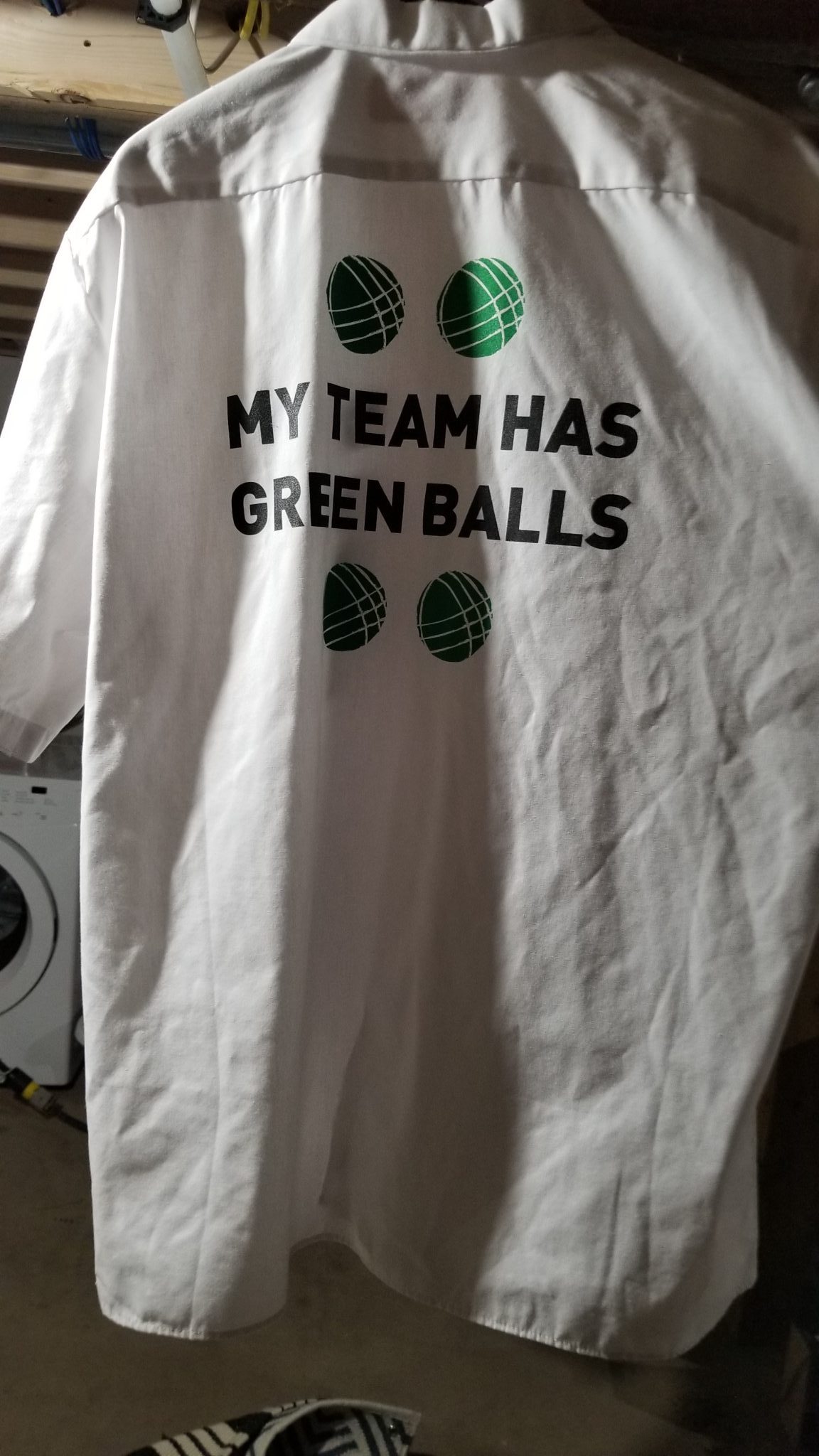 Like I already said, I love Doug’s sense of humor. Because of his intention to continue to expand his camp, in fact he bought another piece of property next to his camp while I was there, he built an industrial-sized leach field to accommodate his septic system. On top of which he built a bocce ball court, covered in crushed oyster shells. Other than smoking cigars and gazing at the stars on a beautiful pitch black night, while sitting in chairs out on his dock, the highlight of my visit was getting my ass whipped in bocce ball. If one is going to play bocce ball at the O’Leary compound, one must don one of the shirts that Doug has specially made just for the event. All white short sleeved shirts, made as team apparel, are printed alternately with, ‘My Team Has Green Balls’ or ‘My Team Has Red Balls’. I'm laughing just thinking about it as I'm writing this. It was such a hoot.