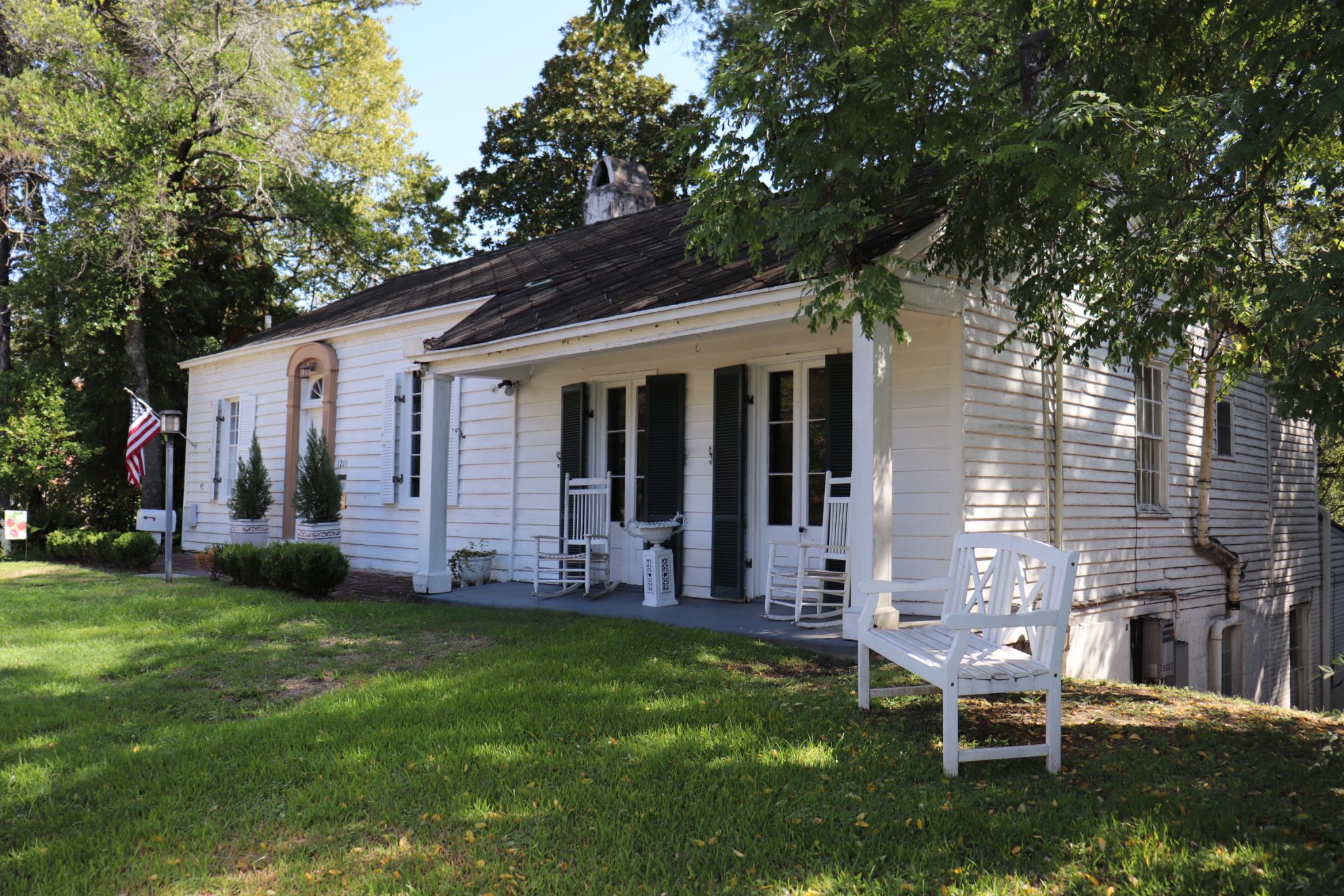 There are white lace curtains in every window. The gossamer fabric filtered the morning sun and broke up the severity of the inlaid wood panels that line the large room where breakfast was served this morning. We sat around a beautiful old walnut dining table that was genteelly set with china, perfectly placed. What once was an antebellum ball room, now serves as an oversized dining room, part of a converted mansion built in 1856. Every morning at 8:30am, a very civilized time, the hotel guests are served a complimentary three course breakfast. First a bowl of fruit, then quiche, grits and a muffin. A small pastry compliments the light fare as a the closer.