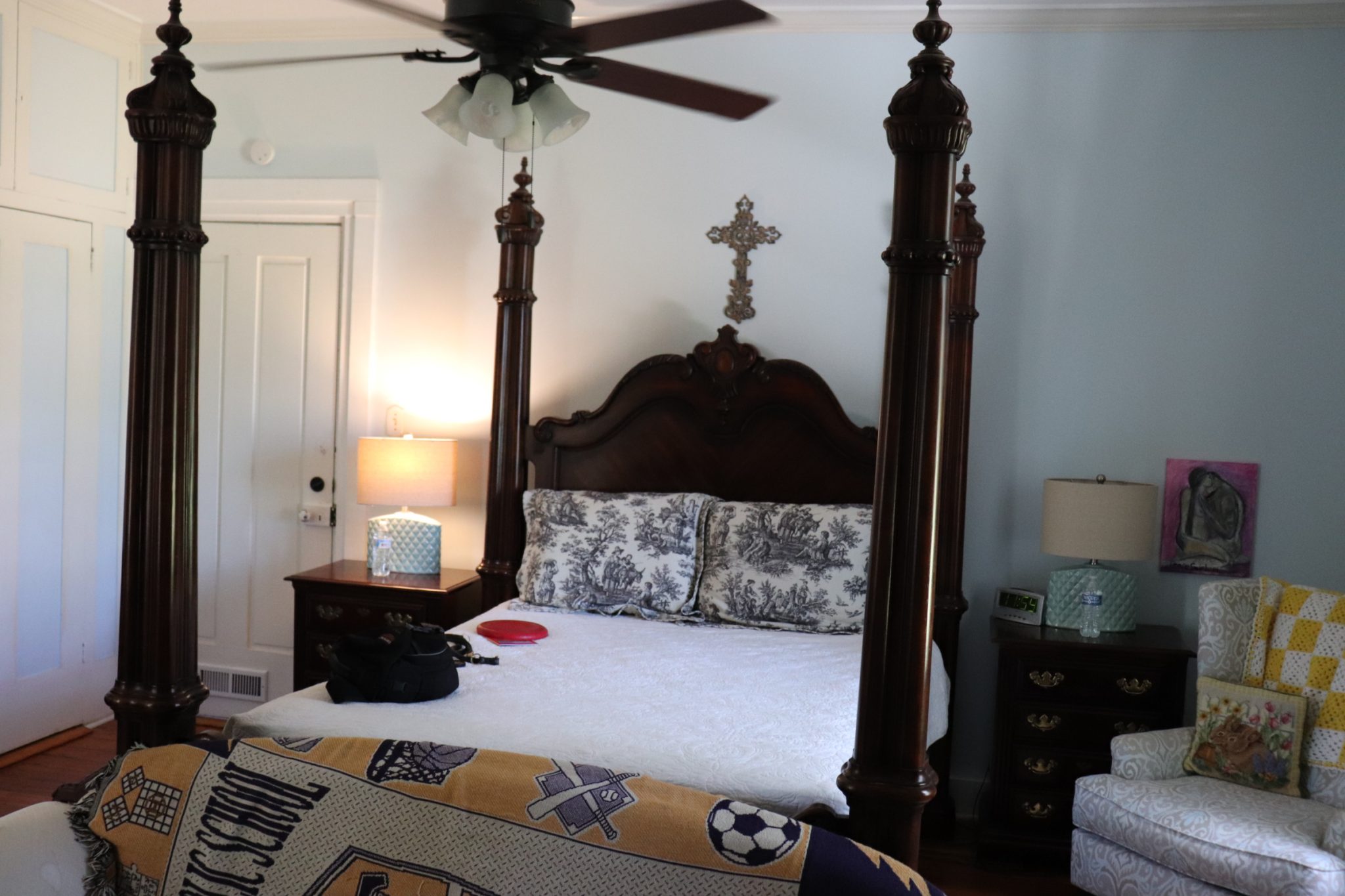 Seated at the table are a couple from Oregon who own a bed and breakfast, two young men from Switzerland here to tour the south, and a fellow traveler who’s done a lot of ‘walk about.’ Quite literally. He is from Alabama and has that slow drawl that the famous Mississippi historian, Shelby Foote, used to great effect in Ken Burns' famous civil war documentary. He sits at the head of the table; the opposing seat at the other end of the table remains empty. He is holding court. He explains to us that the reason that the ceilings are so tall in the dining room is to minimize the effects of the heat that collects in the room on its occupants, especially those dancing. The tall ceiling served as a design element throughout the south before the widespread adoption of air conditioning. It is not hard to imagine the belle of the ball standing there with her dance card waiting for a dashing confederate officer to make an offer.