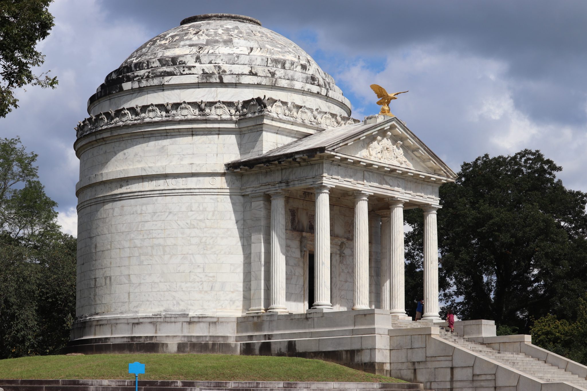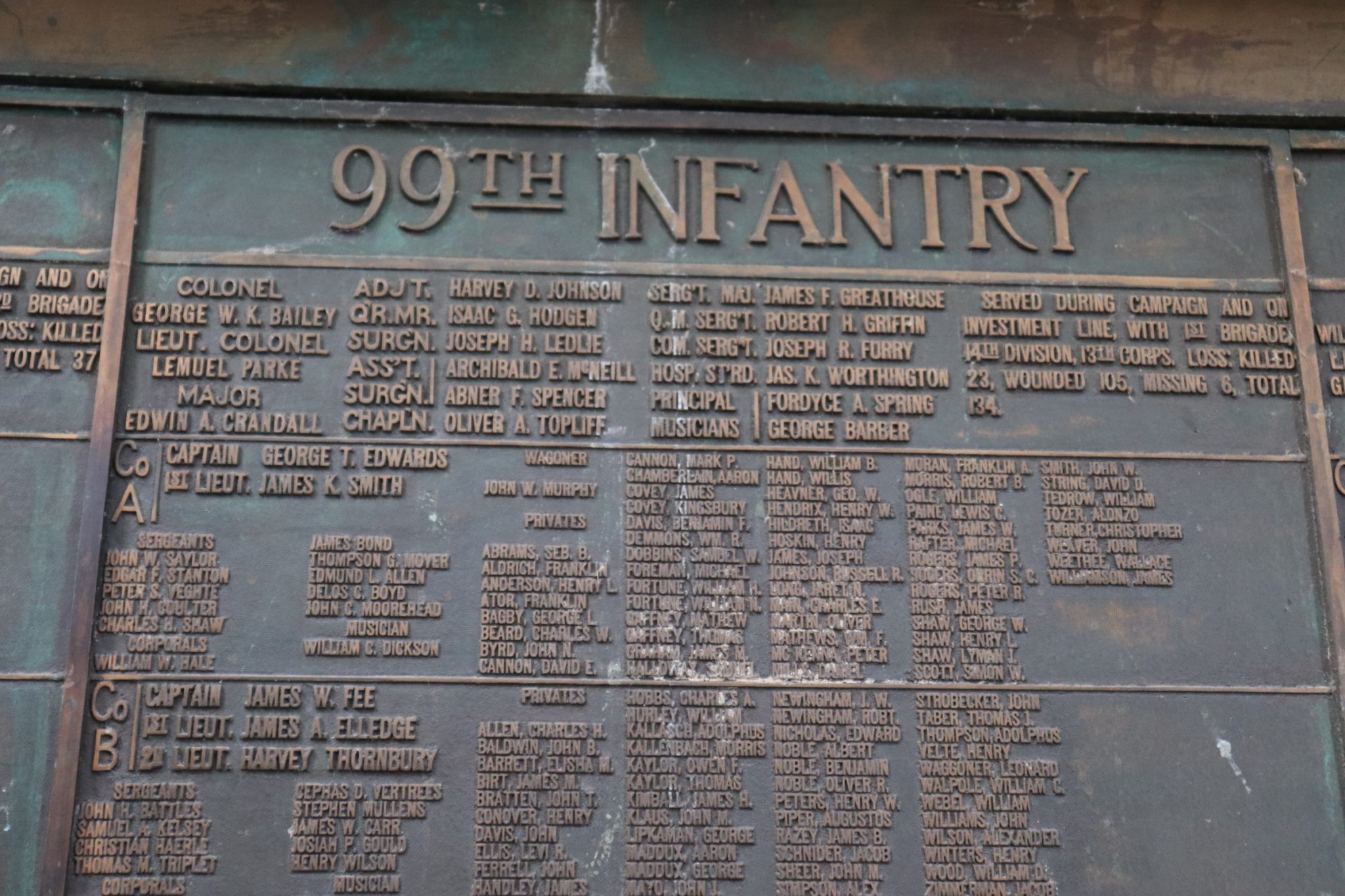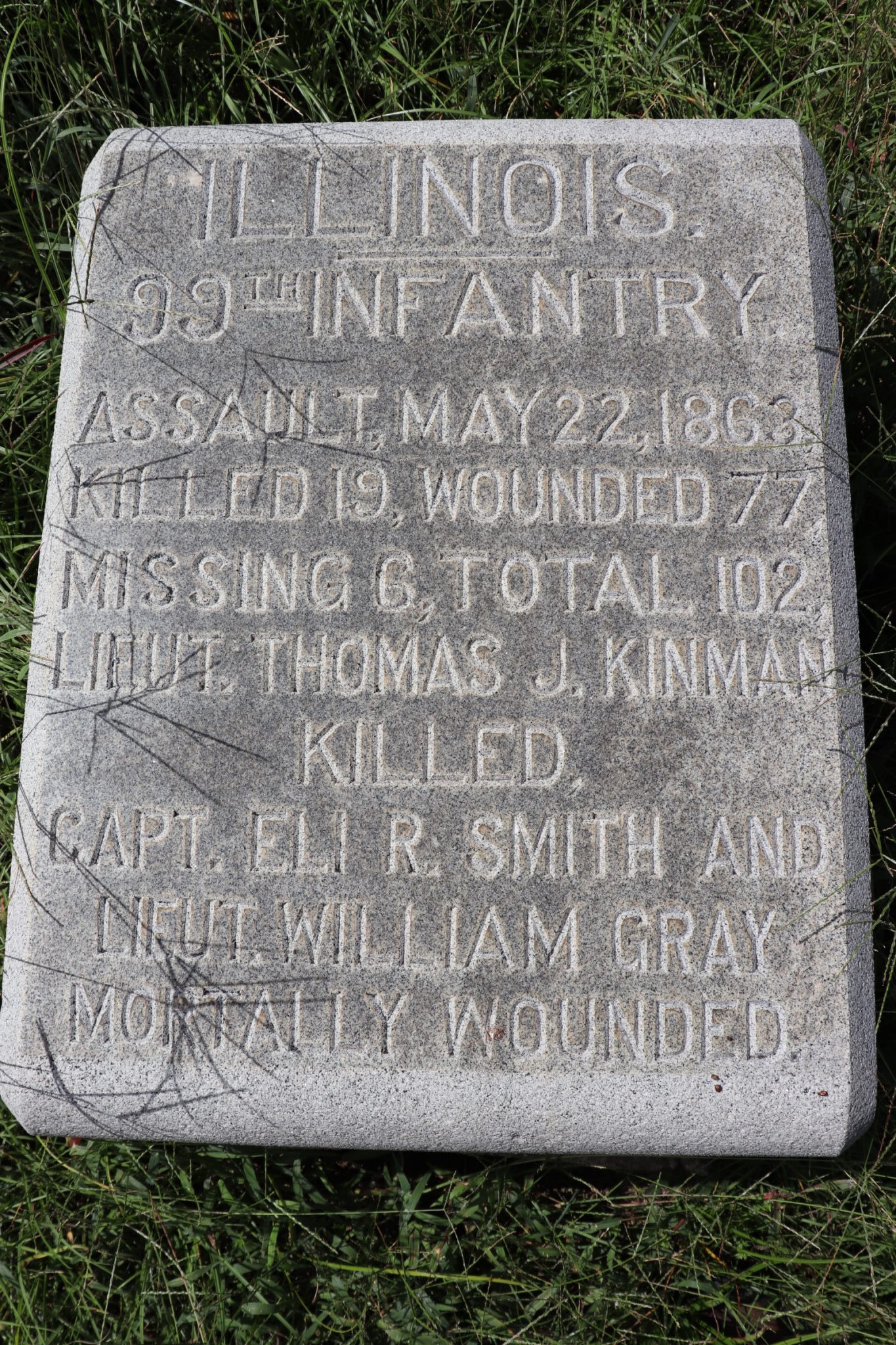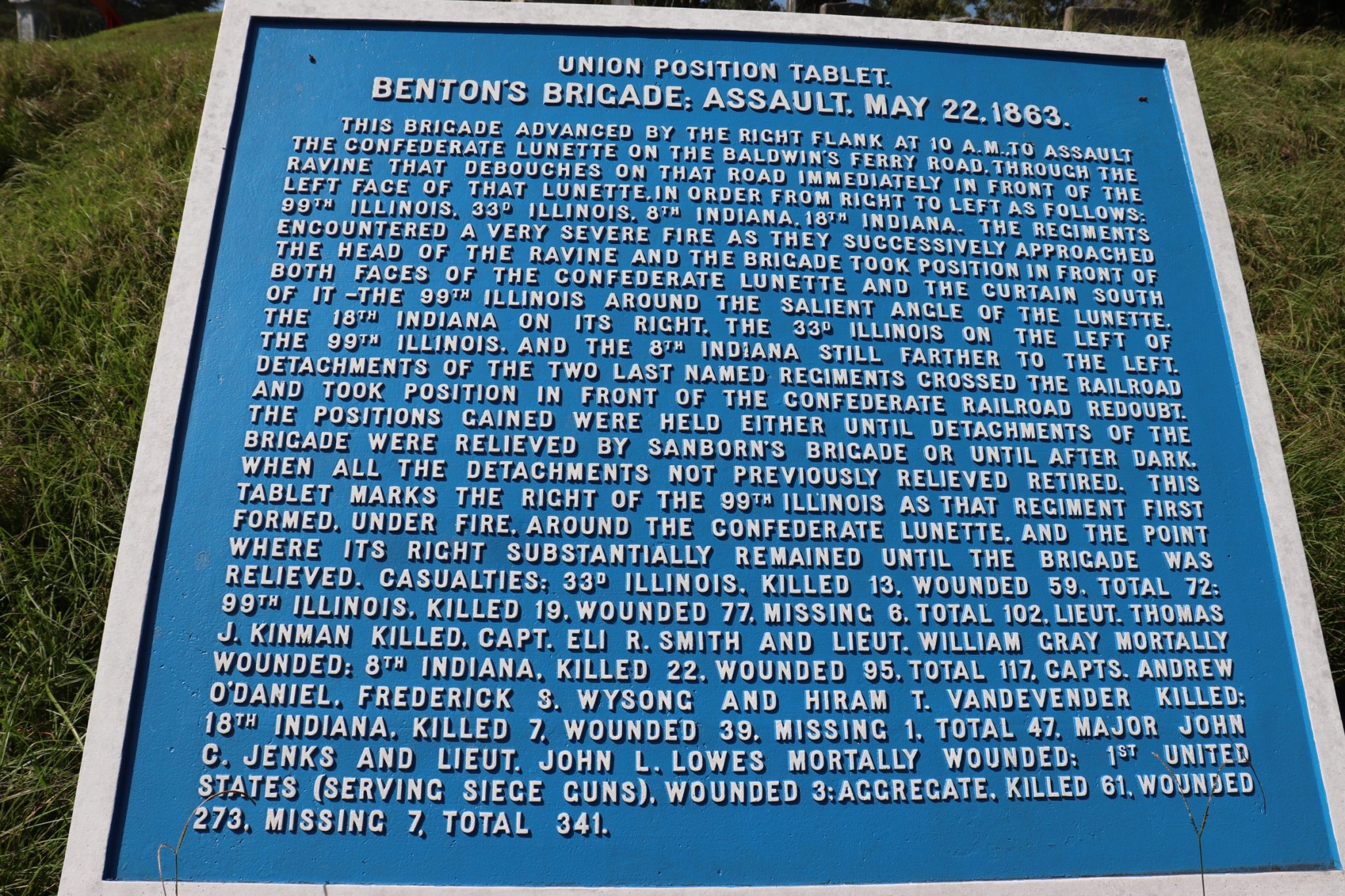 As noted, Teddie and I walked a good portion of the battlefield. Most of it while we searched for the various plaques that commemorate the deeds of the 99th Illinois. They were not easy to find. Some of the plaques are not on the battlefield site at all. They reside across Clay Street. One that I located was placed in a small gully, down a hillside, off the shoulder of the road. It’s where the sharpshooters for the 99th set up a firing line. I never did find three of the plaques that I tried to locate. I had to download their images from the internet. All three are located near, or in, an old Jewish cemetery. There were plenty of signs declaring the cemetery as private property. I felt uncomfortable walking among the gravestones looking for the plaques. A soon as I stepped inside the cemetery I thought better of it and Teddie and I returned to the battlefield.