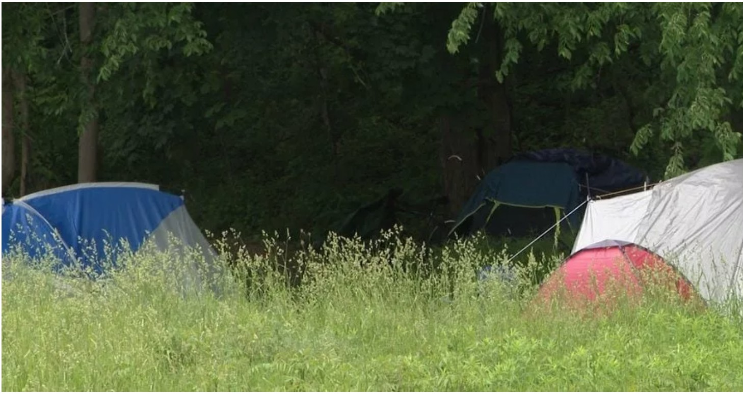 People, locals and tourists, steadily stream by the gravel path, oblivious and unaware that directly on the other side of the short and wiry trees, mere yards away, are the wrecked lives of people stoned and hungry, suspended, frozen, in their anguish. The gravel path, perpendicular to the paved bike path, separates the skateboard park on one side from a copse of trees on the other side that leads down to the water's edge. A group of tents is nestled into the woods, also shaded, bordering on the tall uncut grass that runs alongside the gravel pathway. They look occupied, too.